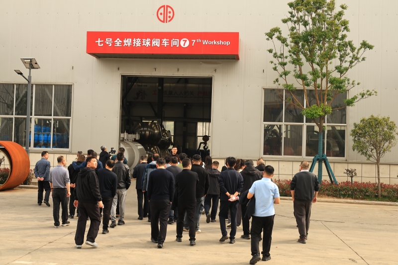 В то же время обе стороны провели дискуссии по международным стандартам, таким как API и ISO, что еще больше повысило глубину и профессионализм технического обмена. 2. Цех цельносварных шаровых кранов: полная демонстрация производственных возможностей большого диаметра