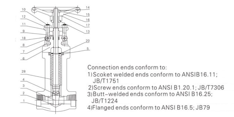 Приварные концы соответствуют ANSI B16.11; JB/T1751